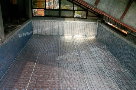 使用材料:安邦雙導發熱電纜,型號ABV0013300 TXLP/2R/17;智能溫度控制器;地暖專用反射膜;鋼絲網等。