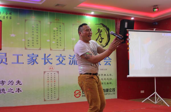 在此次活動中,安邦員工還為家長們帶來精心準備的節目?!赌赣H》、《父親的草原、母親的河》、《父親》等大家熟悉的經典老歌,唱出了兒女對父母親表達的感激之情;動感歌舞《精武門》唱嗨了全場,贏得大家陣陣掌聲;一首手語歌《感恩的心》感人肺腑,感恩父母給我們生命、感謝社會給我們以歷練、感謝企業給我們展示的平臺。來自東北的二人轉演員楊杰模仿能力超強,趙本山、單田芳、劉能、趙四模仿的真是惟妙惟肖,贏的笑聲一片、掌聲不斷。
