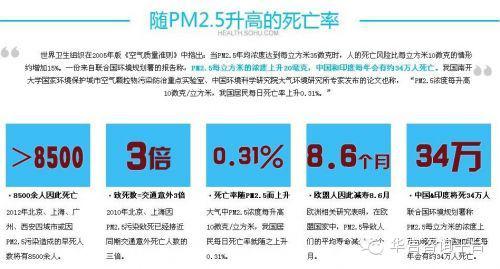 世界衛生組織(WHO)認為,PM2.5小于10是安全值,而中國的這些地區全部高于50接近80!