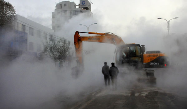由于管網內的熱水量非常大,排水工作一直持續到11日早上10點。水排干后,搶修人員隨即找到泄漏點,開始焊接堵漏。當晚8點左右,搶修人員完成對泄漏點的修補,并開始向供熱管網注水。