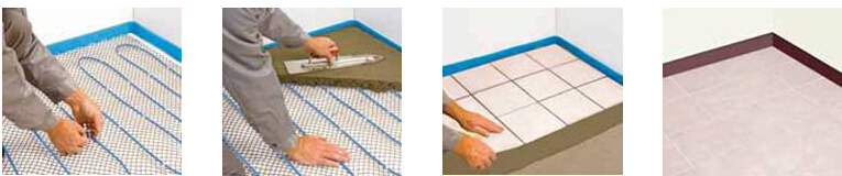 1、鋪設發熱電纜及鐵絲網等配件(包括:發熱電纜、保溫板、反射膜、鐵絲網、卡扣,電地暖部分厚度為2cm)