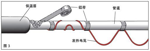 1、一根或多根發熱電纜沿管道拉直排列,見圖1、2。