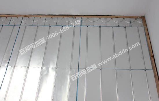 3、電地暖模塊鋪設前在地面的四周靠墻處訂好2X2cm的直木條