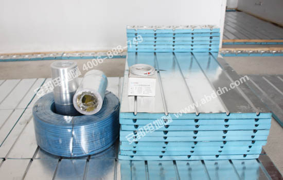 由安邦集團研發并擁有專利的安邦怡干式模塊電地暖系統采用的干法模板由溶重超過40公斤的EPS保溫模塊和帶槽塊鋁板(鋁板厚度約0.6mm)組成。安邦發熱電纜可以簡單的鋪設在模塊的線槽中,根據不同房型模塊可自由裁割,導線可根據需求不同方向鋪設。